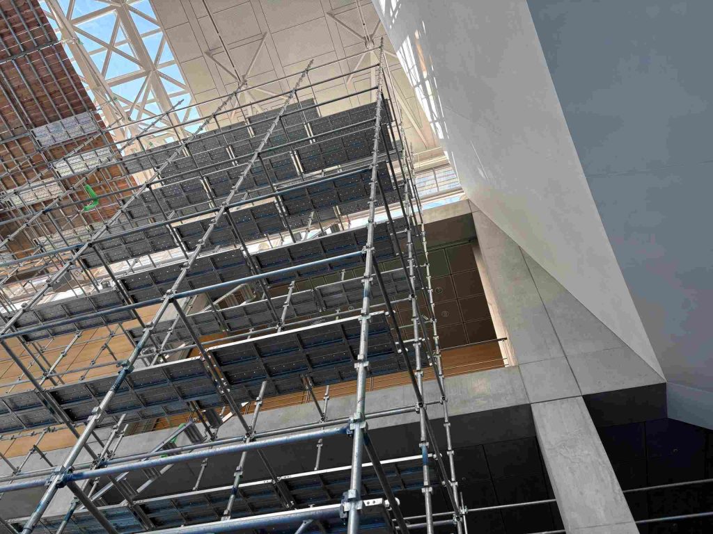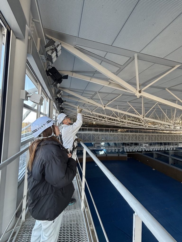 私たちも実際に吊足場を見学させていただきましたが、とても高く、高所恐怖症の丸尾は終始ドキドキしていました・・・!