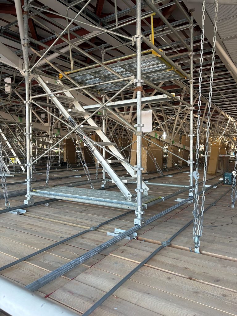 今回の現場は少し特殊で、天井の取替工事(既存のボルトを撤去する工事)を行っているそうです!